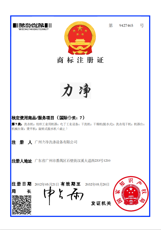 1.“力凈”“力凈LIJING”商標為我司持有商標,請通過國家商標局網站國家知識產權局商標局 中國商標網 (cnipa.gov.cn)核實證書的真實性。